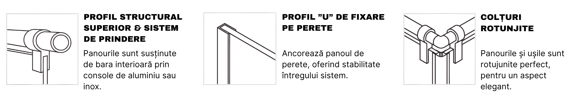 Colecția Elegance aduce o notă de finețe prin proporții atent controlate și o bară superioară rotunjită, cu profil subțire, ce oferă continuitate vizuală și un aspect fluid al întregului ansamblu. Linia barei se integrează armonios în design, păstrând aceeași stabilitate structurală, dar cu o prezență discretă și elegantă.